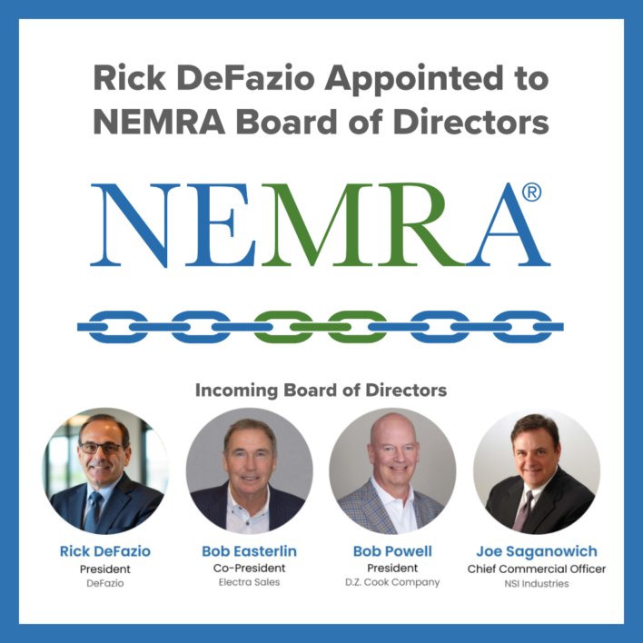 DeFazio LLC is excited to share that Rick DeFazio has been selected to join the National Electrical Manufacturers Representatives Association (NEMRA) Board of Directors for a three-year term beginning in 2026.